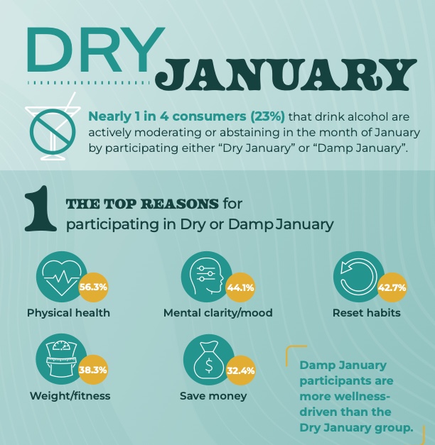 Dry January has evolved into a movement of intentional control and wellness spearheaded by the rise of "Damp January," according to a survey from Curion that found 23 percent intended to follow this trend of moderation or abstinence last month.