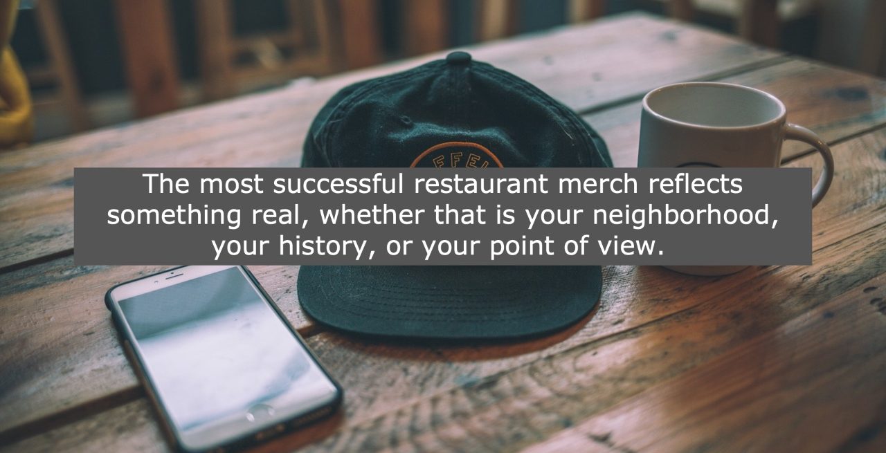 Just as important is reflecting your restaurant’s story in the merch. The most successful restaurant merch reflects something real, whether that is your neighborhood, your history, or your point of view. When that connection is clear, the product carries more meaning.