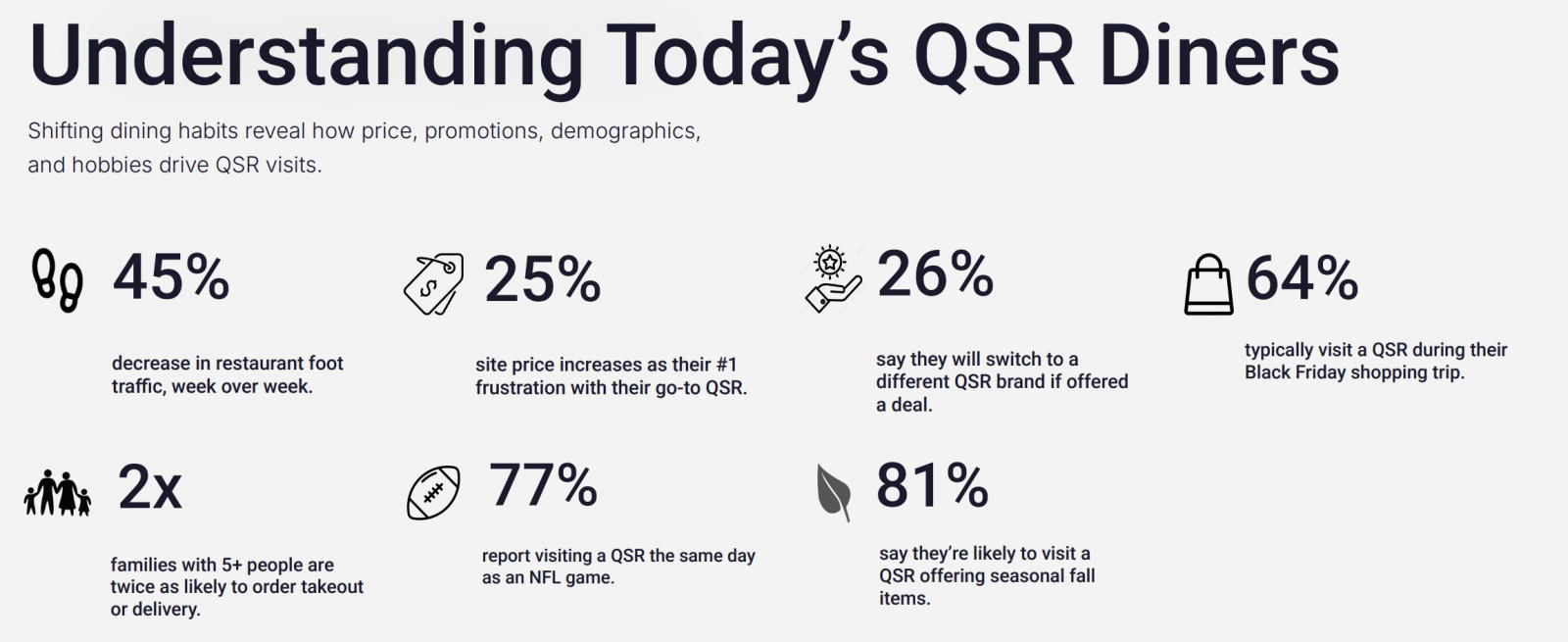 Azira’s State of QSR report showed consumers demonstrating a 45 percent week-over-week drop in QSR foot traffic, and 26 percent say they will switch to a different QSR brand if offered a deal, signaling affordability pressures and possible oversaturation across QSR chains. According to the report, 28 percent say value and price is the single most important factor when deciding which QSR to visit.