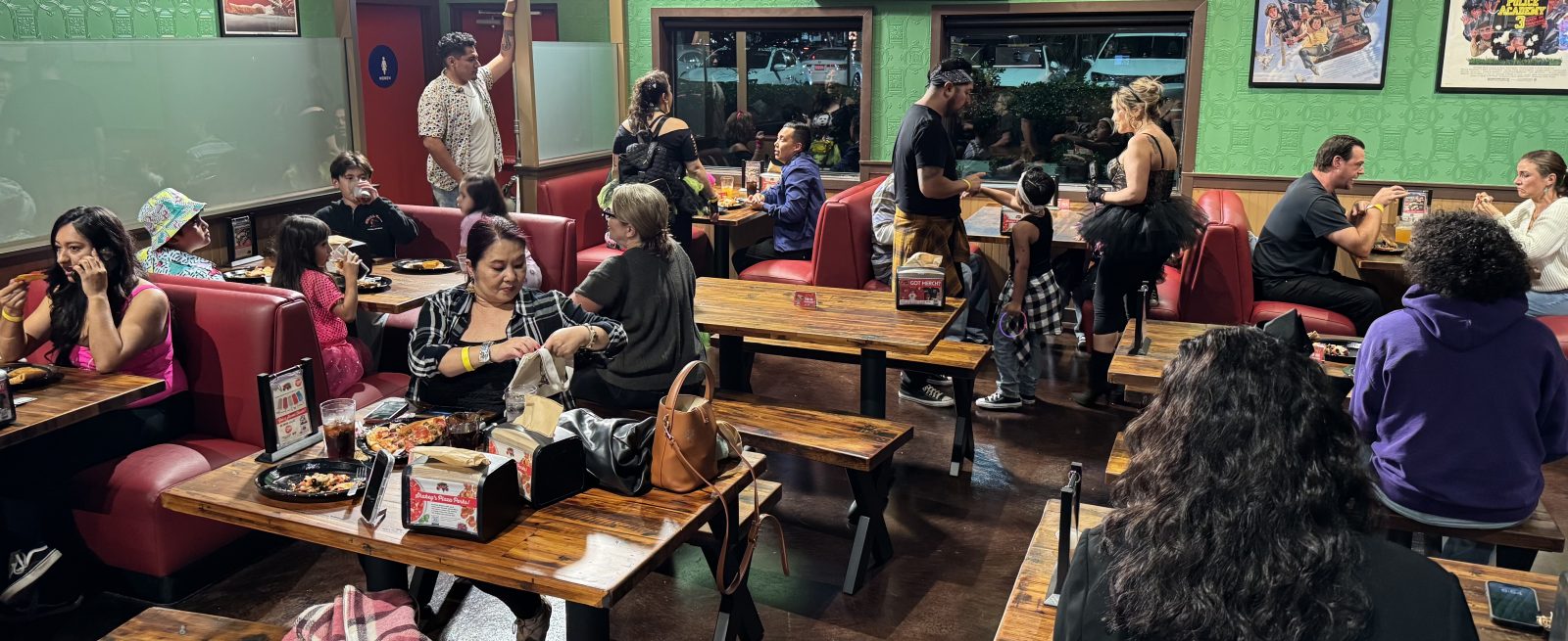 In November, the reset flagship location in Culver City, California reopened with signature décor elements including textured wallpaper, wainscoting, communal benches and tables, stained glass lighting, and 80s pop-culture memorabilia that evokes nostalgic Americana and the neighborhood pizza parlor experience.