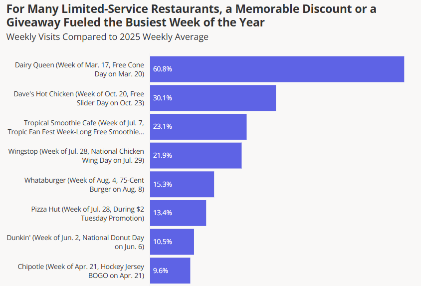 The report reveals that the busiest weeks of 2025 show that even in a tough, value-conscious environment, limited-service restaurants still have multiple, proven ways to drive traffic. So what are the best strategies for brands to create deals that differentiate them from "everyday value" and feel valuable to potential guests?